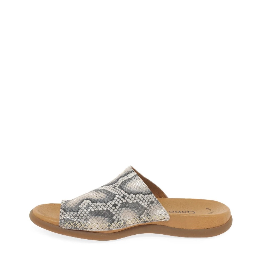 Gabor Ladies Lanzarote Snake print toe ring open mule with foot support on a leather insock